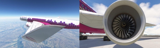 Right off the bat, the A350 looks absolutely stunning. The external modelling of this plane screams sleek futuristic efficiency. The composite wings curving like a supermodel's smile, and in my opinion, are the best-looking wings fitted to a modern-day airliner. Those powerful Rolls-Royce Trent XWB engines look like massive biceps that effortlessly brings this bird to altitude.